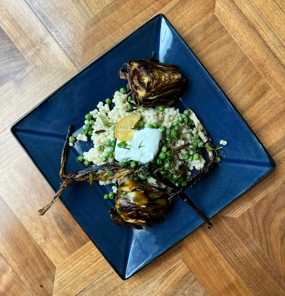 1 c wheat chef, 2 T maple syrup, 1 t kosher salt, 2 t vanilla, 1 T cardamom, 1/3 c chocolate chunks, 1/4 c hazelnuts, 1/3 c warm elmhurst milked hazelnuts, 2 c white whole wheat flour