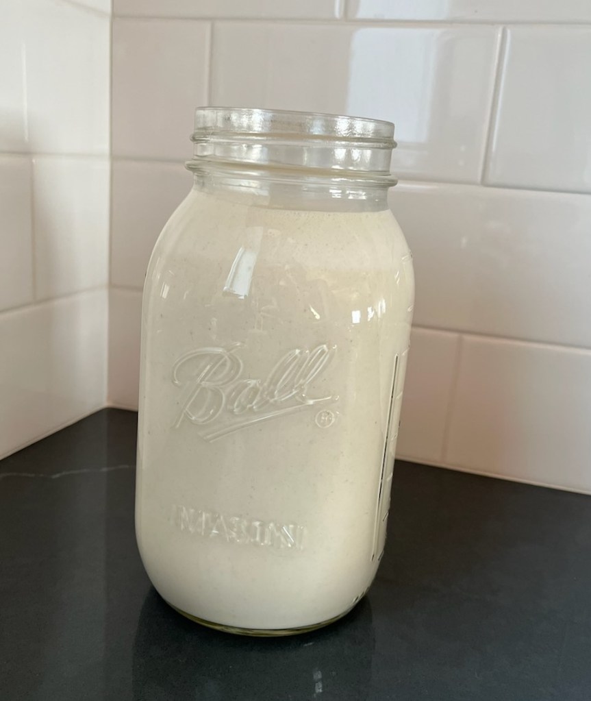 1 c wheat chef, 3/4 c aquafaba, 3 c flour, 1/2 c water, 1 T sugar