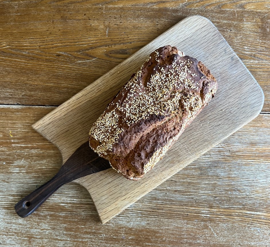 rest yeast mixture 5 minutes, add all but seeds; pour into parchment-lined loaf pan, add seeds, rest warm place uncovered 15 minutes; 450 F, 20 minutes; 400 F, 30 minutes; remove from pan; upside down on oven rack, 400 F, 10 minutes