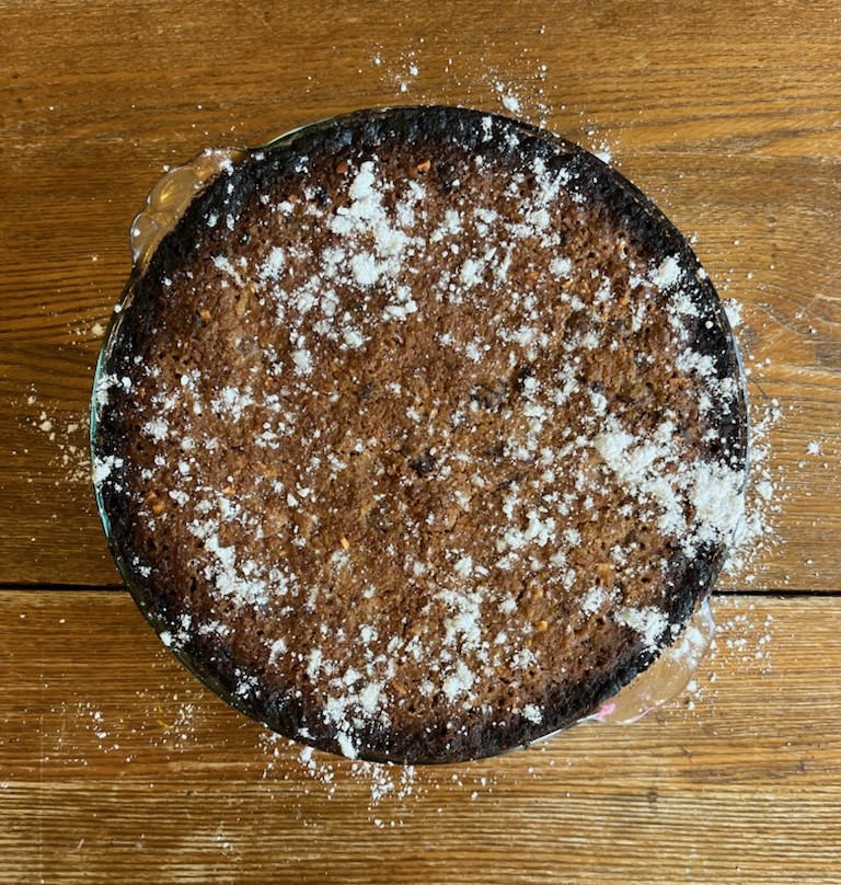 1 1/4 c ground flax, 1 bag chocolate chips, 1 c sugar, 2 c flour, 1 t salt, 1 T powder, 1 c chopped nuts, 1 c chopped dates, 2 c canola oil, 1 T lime juice