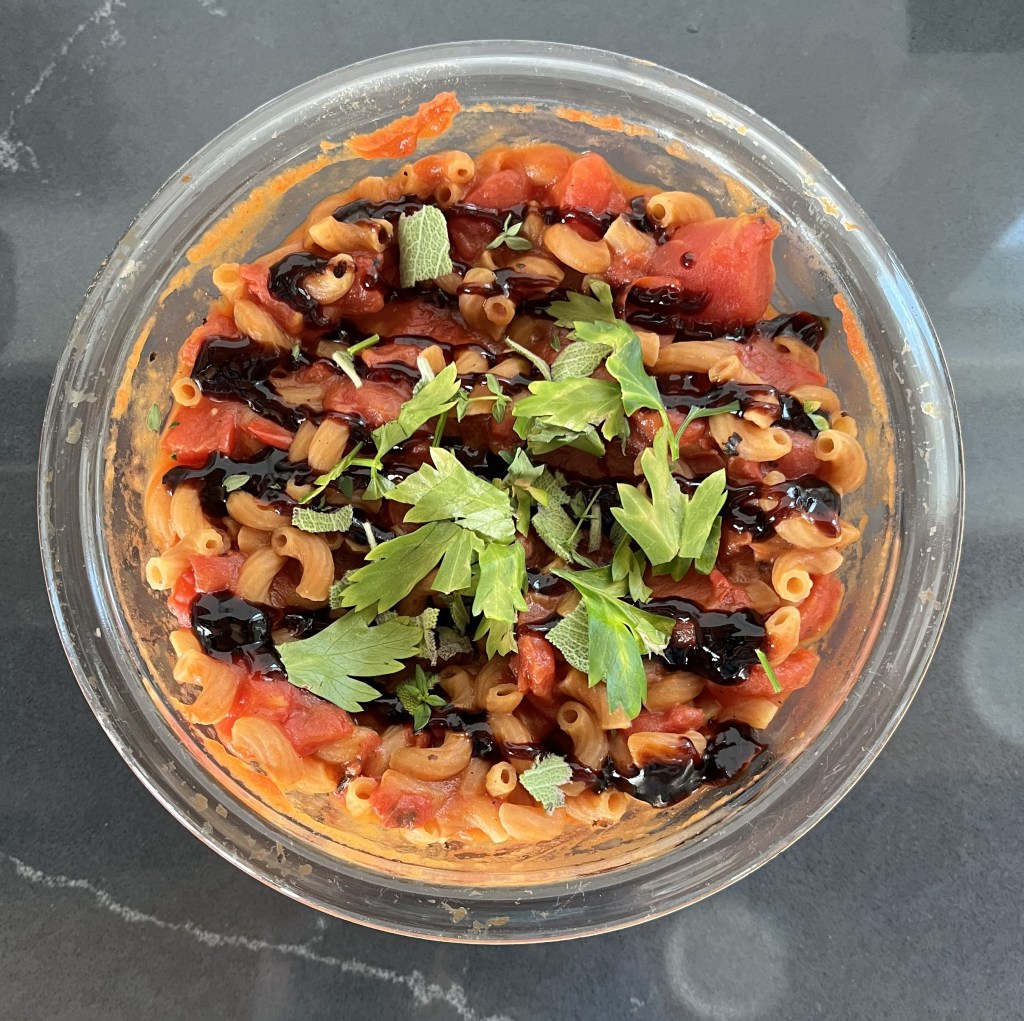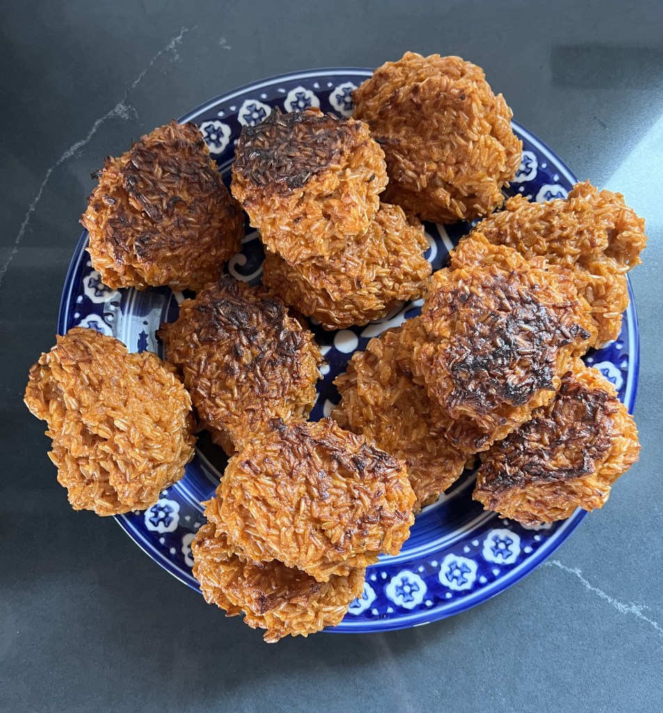 1 c wheat chef, 1 bag lily’s stevia-sweetened chocolate chips, 8 oz vegan cream cheese soft, 2 T vanilla, 2 c white whole wheat flour, 3 c chocolate oatly