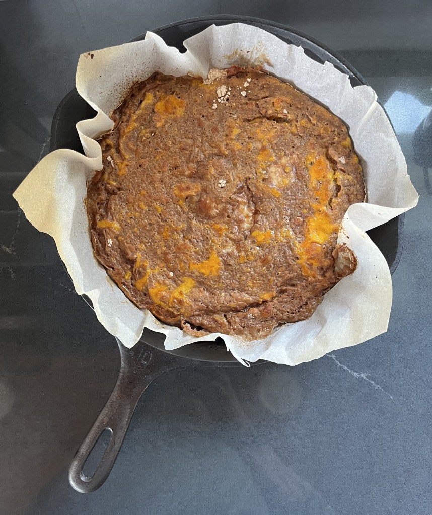 whisk in parchment-lined cast-iron pan, place in cold oven set to 450 F, 45 minutes