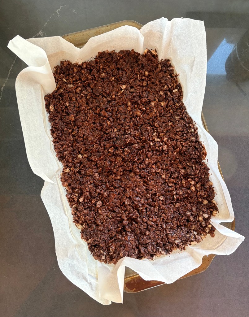 3 c flour, 2 t ginger, 2 t cinnamon, 1 t salt, 1/2 t pepper, 1/2 t soda, 1/2 t powder, 1/2 c canola oil, 1/2 c molasses, 1/2 c brown sugar, 2 T chickpea flour, 3/4 c warm water, 1 bag mini chocolate chips